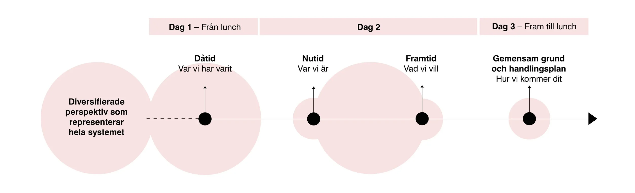 Erfarna facilitatorer leder processen så att deltagarna kan fokusera på sakfrågan och avsluta med en konkret handlingsplan som alla känner sig delaktiga i.